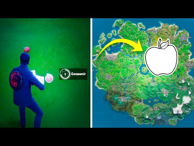 Fortnite GUÍA de DESAFÍOS de TIRO CON TRUCO Consume manzanas del suelo en El Huerto desafío DIFÍCIL tutorial en español